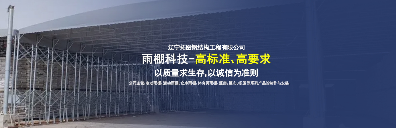 遼寧拓圖鋼結(jié)構(gòu)工程有限公司是一家專業(yè)從事推拉篷設(shè)計、制作、安裝、使用、維修的綜合性公司。公司主營:電動雨棚、活動雨棚、倉庫雨棚、體育類雨棚、篷房、篷布、帳篷等系列產(chǎn)品的制作與安裝。 遼寧拓圖鋼結(jié)構(gòu)工程有限公司堅持以市場為導(dǎo)向,以科技創(chuàng)新為動力,以質(zhì)量求生存,以誠信為準(zhǔn)則,倡導(dǎo)求實、進(jìn)取、創(chuàng)新的企業(yè)精神。“科學(xué)的管理、嚴(yán)謹(jǐn)?shù)脑O(shè)計、 的制作安裝、嚴(yán)格的質(zhì)量檢測、良好的后期服務(wù)成就企業(yè)的信譽(yù),為您提供優(yōu)質(zhì)服務(wù)。 遼寧拓圖鋼結(jié)構(gòu)工程有限公司傾力于開發(fā)應(yīng)用三維空間結(jié)構(gòu)與新材料的結(jié)合,將廣告藝術(shù)視覺表現(xiàn)形式與張力膜材科學(xué)的結(jié)合,推出多彩推拉蓬,依靠先進(jìn)的科學(xué)技術(shù),將推拉蓬建筑表現(xiàn)形式無限延伸,立志走在建筑科學(xué)的前沿,引導(dǎo)建筑時尚潮流,我們的目標(biāo)是使推拉蓬建筑在中國發(fā)展壯大。 遼寧拓圖鋼結(jié)構(gòu)工程有限公司憑著極強(qiáng)的事業(yè)熱情和豐富的專業(yè)經(jīng)驗以“勤勉進(jìn)取、銳意創(chuàng)新、至誠至信”的精神使公司得到迅速健康發(fā)展,業(yè)務(wù)范圍遍及全國。科學(xué)的管理、嚴(yán)謹(jǐn)?shù)脑O(shè)計、高標(biāo)準(zhǔn)的制作安裝流程,嚴(yán)格把控產(chǎn)品質(zhì)量,熱誠的售后服務(wù)是企業(yè)競爭力的源泉。 遼寧拓圖鋼結(jié)構(gòu)工程有限公司人愿以最誠摯的態(tài)度,歡迎廣大客戶的蒞臨與溝通!愿為市場提供優(yōu)...